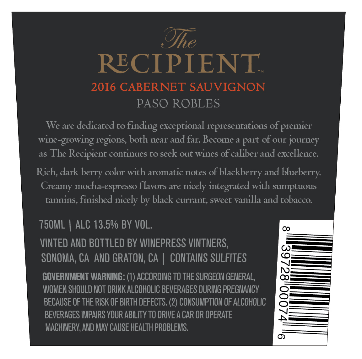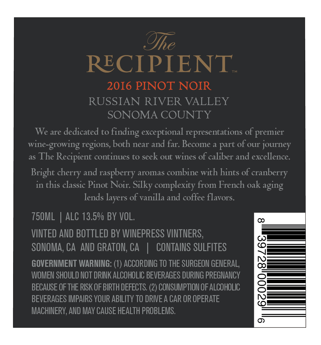 2016 The Recipient Pinot Noir