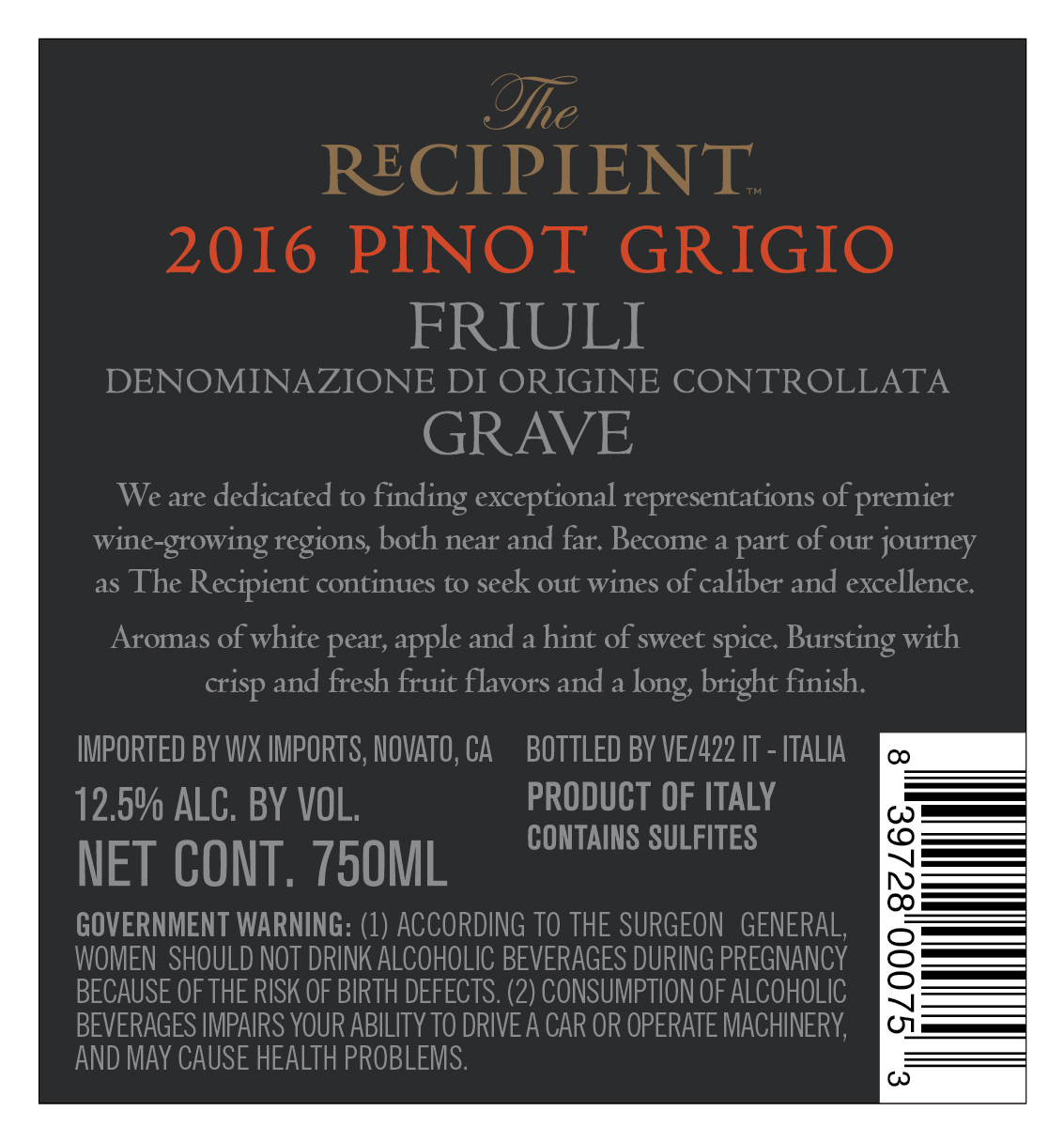 2016 The Recipient Pinot Grigio
