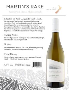 Martin’s Rake Sauv Blanc Fact Sheet